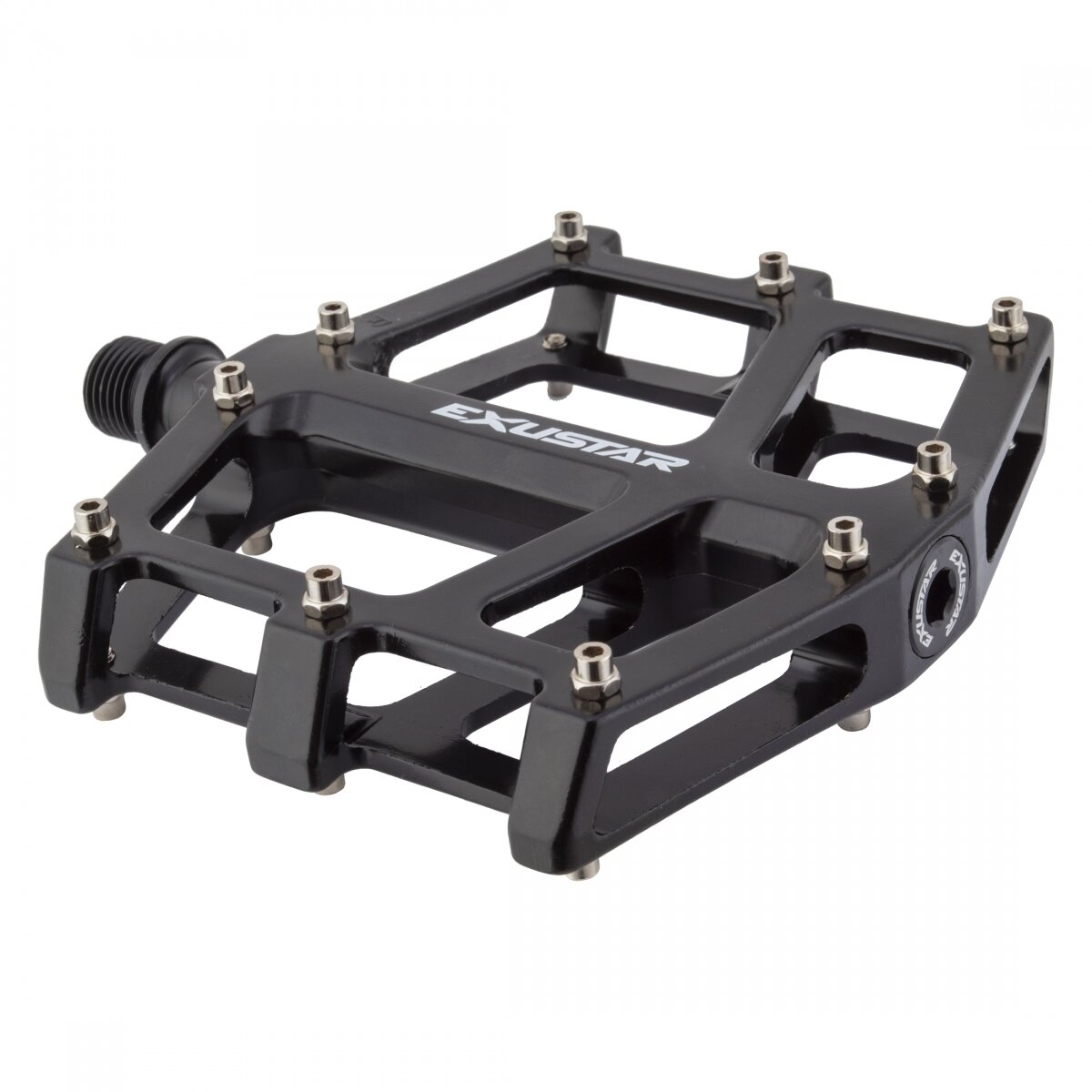 Die-cast aluminum platform pedal with machined chromoly axle and slim dual bearing design